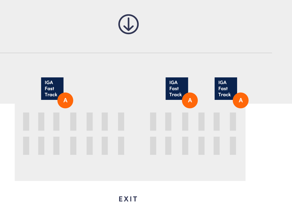 - Пройдите к одной из стоек IGA Fast Track, которые располагаются перед зоной паспортного контроля. Один — по левую сторону, второй — по правую сторону терминала.